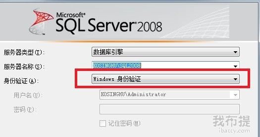 登录MSSQL Server 2008时,选择“windows 身份验证”问题既可解决!
