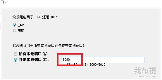 二、选择TCP,填写允许的端口号,点“下一步”